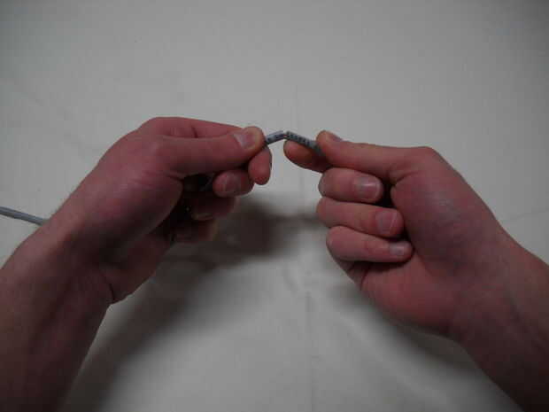 Retire los peladores y doble suavemente el cable a lo largo de la línea. Esto debe romper la envoltura que puede sacar el cable y tirar.