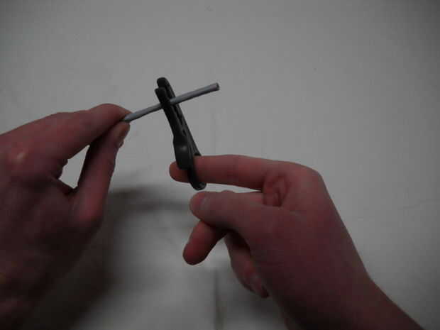 Nota: Gire los peladores solo una vez. Convirtiendo la stripper más de una vez aumenta la posibilidad de cortar el forro de los alambres internos. Si el revestimiento interior se corta, puede hacer los pasos más difíciles o causar los hilos a romper.