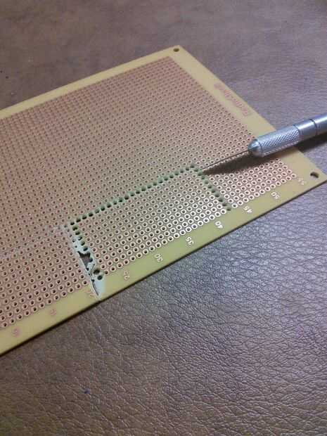 Después, coge la navaja X-acto y romper las barreras pequeñas (o complemento de si te sientes arriesgado) entre los pequeños agujeros, así que ahora tienes una pieza independiente de PCB!