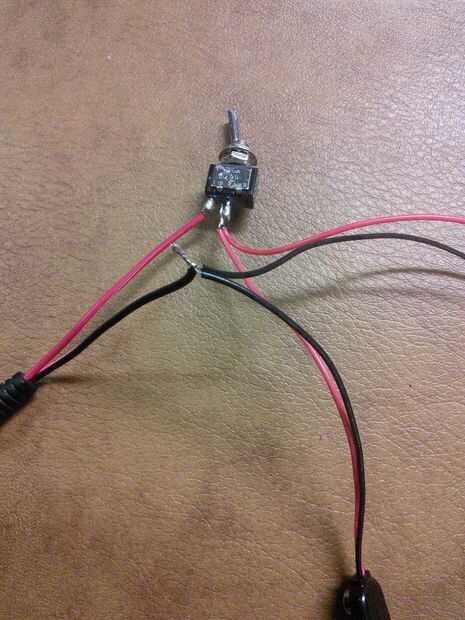 Para hacer que la batería simple mecanismo de encendido, usted comenzará con su pequeño interruptor, dos conectores de la batería de 9v y su enchufe jack DC, asegurándose de que todos los cables se pelan un poco. En casi todos los casos, los colores de los cables será rojo y negro, para las tres unidades. Tomar el cable rojo de la clavija de CC y a uno de los extremos del interruptor de la soldadura. Luego, soldar dos cables rojos de los conectores de la batería de 9v al otro extremo del interruptor. Para colmo todos, soldar los 3 cables negros juntos, que quiera poner alguna cinta eléctrica sobre este, o encogimiento del calor de la tubería, para evitar cortocircuitos.