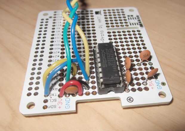 Soldado un cable de puente rojo entre el pin VCC del transceptor y el + 3, 3V del carril en el sombrero.