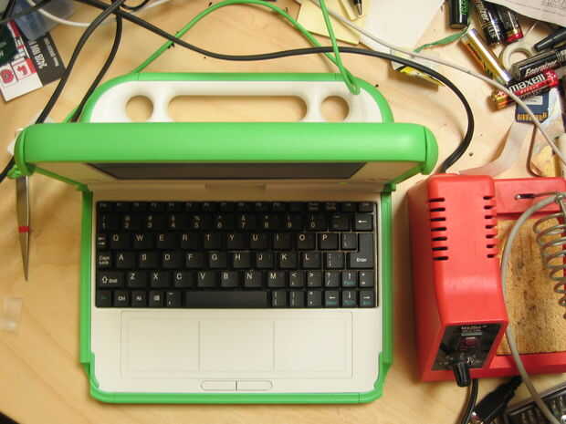 11. una laptop OLPC XO, preferiblemente uno que tiene un feo USB cable colgando hacia la parte posterior