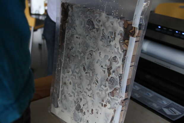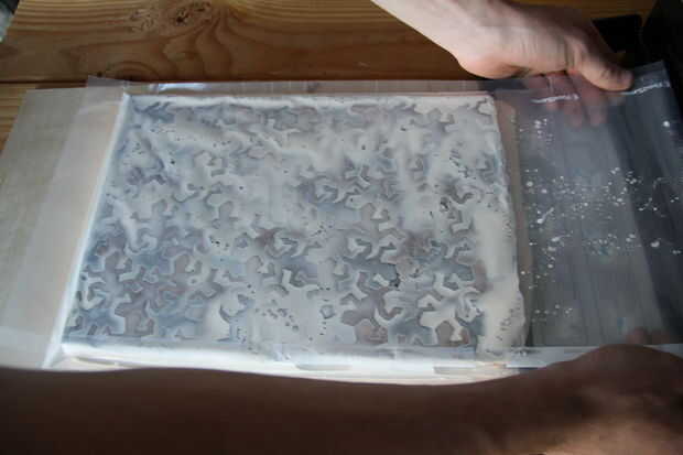 Hubo un sorprendente volumen negativo entre las grietas, así que llevó dos carreras de embalaje para obtener el tablero entero.