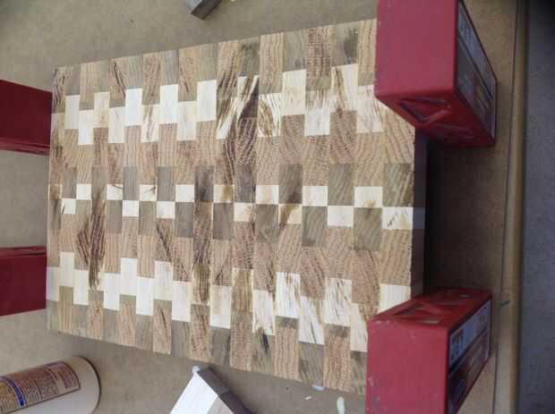Pegar esos if juntos, cuando corte observará casi un aspecto negruzco CD (vaya pregunte al personal de techshop para cambiar la hoja de la Sierra de mesa!), ejecutar un trozo de papel de lija en los bordes pegado para que el pegamento tenga "poros" para ir a la madera
