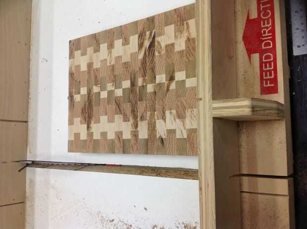 Recuerdo ahora, cuidado con la cepilladora vio usando la madera de grano de extremo que puede socavar en los extremos así que sólo corrí a lo largo de la mesa para conseguirlo cuadrado