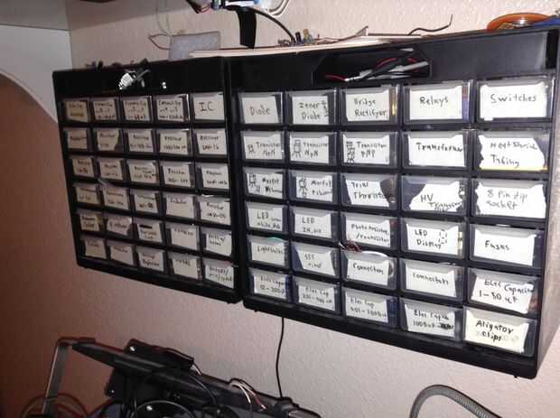 Materiales: La mayoría de los materiales para este proyecto se puede salvar de los dispositivos electrónicos viejos. Las resistencias de 1/4 watt fueron compradas a granel en Ebay. Los resistores de alto voltaje fueron rescatados. Condensadores, bobinas, transformadores de potencia, altavoces, madera y losas de metal fueron rescatadas de viejos dispositivos electrónicos. Los tubos fueron encontrados en un lote que compré en Ebay.