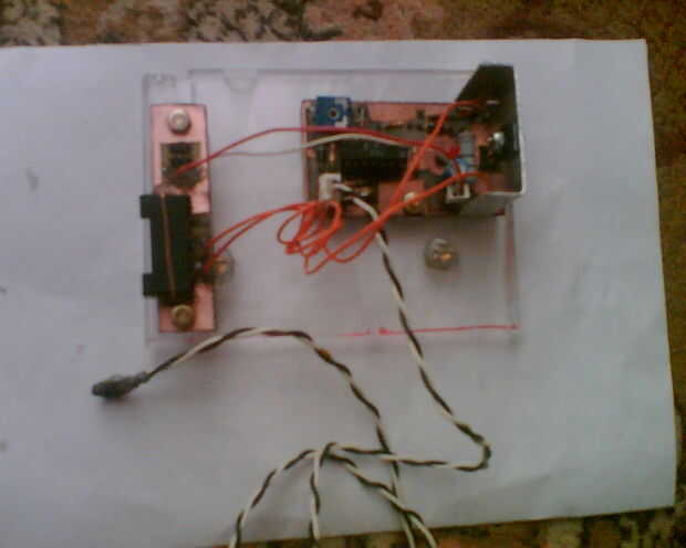 Un generador termoeléctrico, alimentado por una candelita. Comenzó como un experimento de cuanta energía se podía obtener de una vela. Pero me gustó la idea y funcionó muy bien así que construí este ornamento eléctrico-mecánico. No utilizo una temper