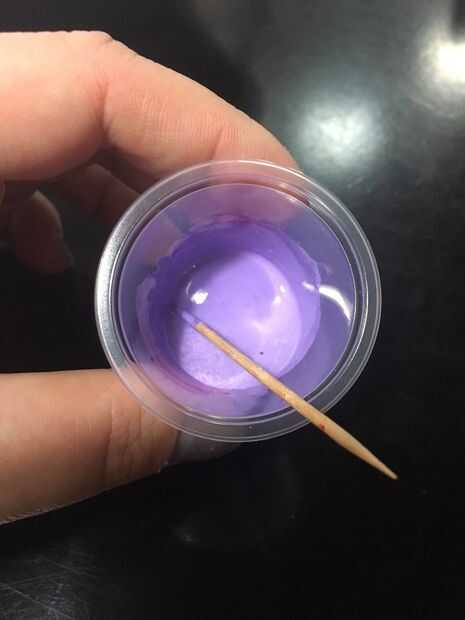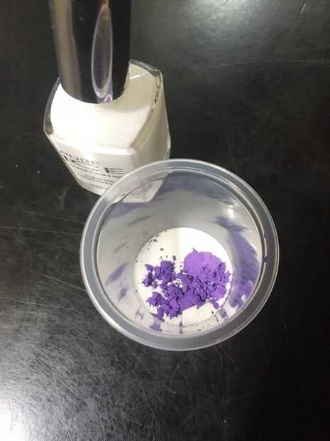 Derramé un poco del blanco polaco en un vaso desechable y añadido 1/4 de cucharadita de pigmento y revuelto con un palillo hasta que el polaco incorporado el polvo.