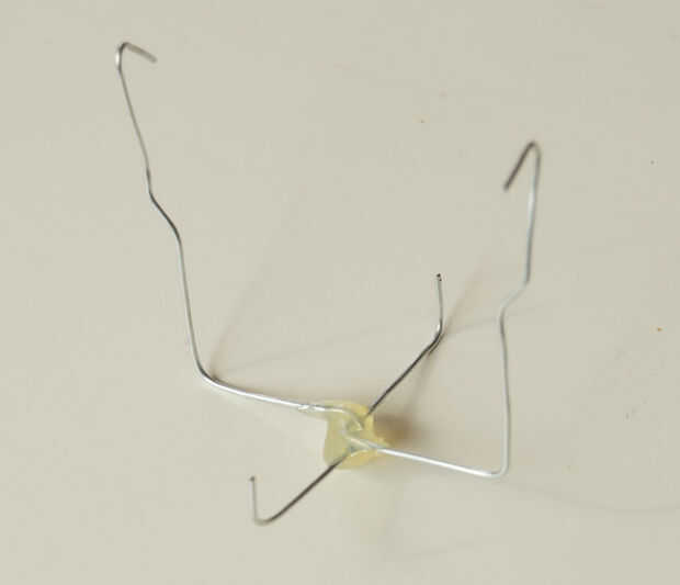 Esta es la parte más difícil, que supongo. Tal vez más fácil si haces esto al final cuando todo haya terminado y trabajo. Utilicé un alambre fino para doblar utilizando sólo dos piezas. Era difícil para todos los ángulos de la foto. Esta parte llevará a cabo la vela bajo el módulo termoeléctrico a una distancia por lo que la llama no toque la placa de aluminio.
