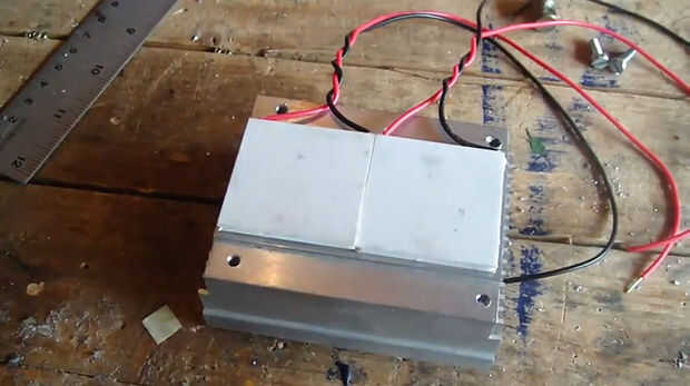 Pone los peltiers sobre el disipador de calor, listo para el ajuste seco. Es mejor hacer un ajuste seco primero para asegurarse de que todo alinea correctamente. Cuando estés listo para montar la bandeja bien, coloque el compuesto termal a ambos lados de los peltiers.