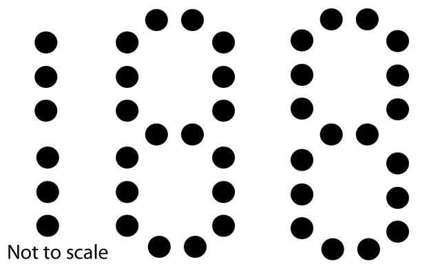 El siguiente paso del proyecto es tomar las placas y corte los bloques de madera que sobresalen. Esto puede hacerse una vez más con una sierra de marquetería. Una vez que se recortan al ras con las placas superior, marcar la cuadrícula de LEDs en uno de los dos. Los patrones de dimensiones variarán en función del tamaño de la cara, pero el patrón general debe ser el mismo. Opté por hacer solamente los segmentos horizontales de 2 ya que utiliza menos LEDs, si quieres 3 funcionan bien (en mi primer intento que había planeado hacer 3, las imágenes que se encuentran en la página 3). El patrón debe ser marcado en la cara para que los bloques están detrás de él.