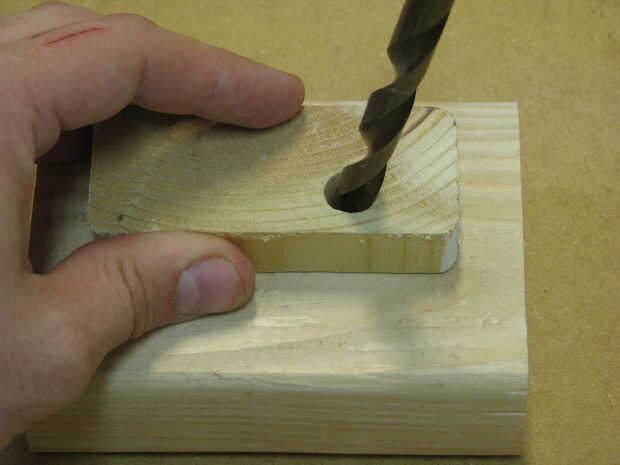Sugerencia - Si no tienes una prensa del taladro, tomar un trozo de madera y poner y el taladro en una esquina plana. Luego perfore la pieza de madera tanto en ángulo recto manteniendo (al menos tanto como sea posible). Una vez terminada debe tener un buen agujero recto a través de la pieza. Ahora puede mantener en la cima de la pieza que son perforación. Deben ayudar a algunos para mantener el taladro perpendicular a la pieza de trabajo.