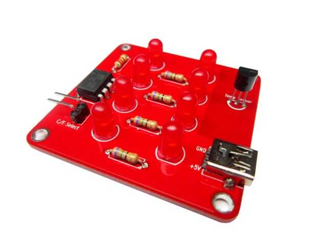 La lectura es tan fácil como simple adición. La columna de la izquierda de las luces representa las decenas y la columna derecha los. El valor de cada cable, a partir de la parte inferior es 1, 2, 4 y 8. Por lo que la temperatura en la foto de arriba es 1 + 2 + 4 = 7 para las decenas y 1 + 2 + 4 = 7 para los que los grados de lectura 77.