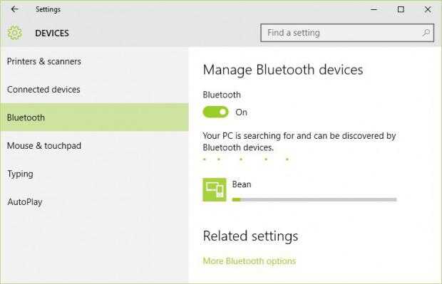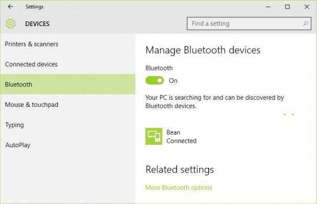 El ciclo básico usar par conectar (y reparar y volver a conectar cuando las cosas van mal) es la siguiente: desde el Panel de Control; / ajustes de Bluetooth, usted debería ver la siguiente pantalla: