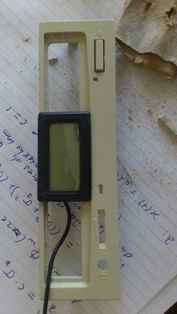 Ahora toma de la parte delantera de lo que solía ser una unidad de CD. Medir las dimensiones exteriores de su termómetro y marque en la unidad de CD. Luego serrar a estas dimensiones con su. Es más fácil que si a cortado el bisel superior parcialmente, no contribuye mucho a la integridad estructural del frente de todos modos. Como de costumbre, es mejor verla demasiado apretado y arena más adelante, que al corte de demasiado. Si lo haces suficientemente precisa, que se ajusta herméticamente sin necesidad de pegamento.