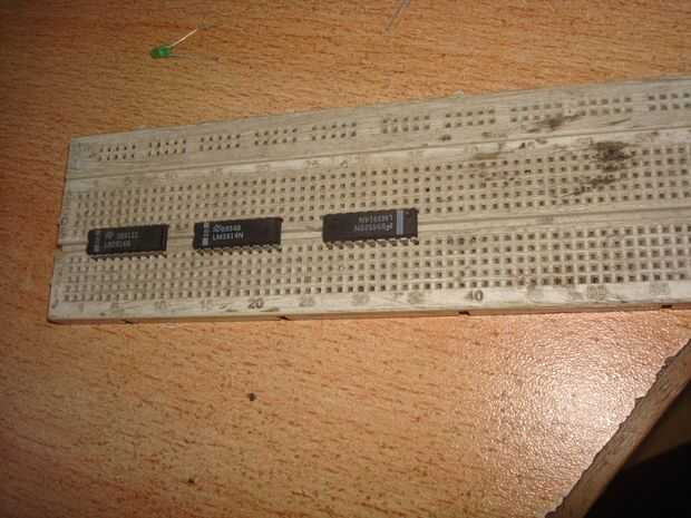 Primer paso es añadir los tres CI LM3914. Preste atención a la muesca. Introdúzcalos con boquete de cinco hoyos.