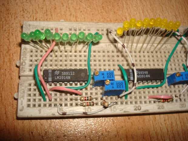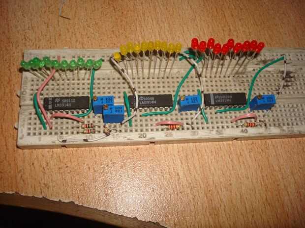 Nido he añadido las resistencias. Primero añadí 1 k variable y 2,2 k fijo a dos de la ic. Después de que i agrega los restantes 2 1 resistencias variable y 2 k y 330 ohmios k con el CI tercera.