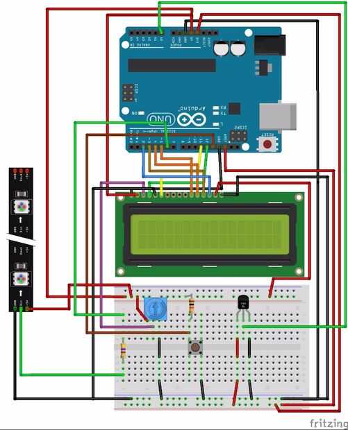El resto del circuito es bastante auto explicativo y claro en el diagrama de Fritzing, recuerde separar los circuitos TMP36 y primaria.
