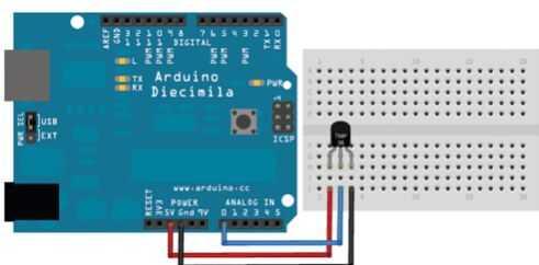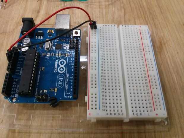 Comience conectando su 5v y tierra. Siga el cuadro en la parte inferior izquierda. Nos permite que conectar todos los otros componentes que también necesitan 5v. Ahora Conecte el sensor de temperatura. Aquí está el pinout básico que usted necesita. Extremo izquierdo pin a 5v, medio pin analógico 0 en Arduino y ahora derecho a la tierra. También si eres nuevo usando una tabla de pan, aquí hay un enlace a un tutorial de protoboard: https://learn.sparkfun.com/tutorials/how-to-use-a-breadboard