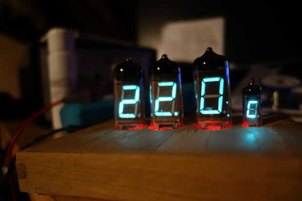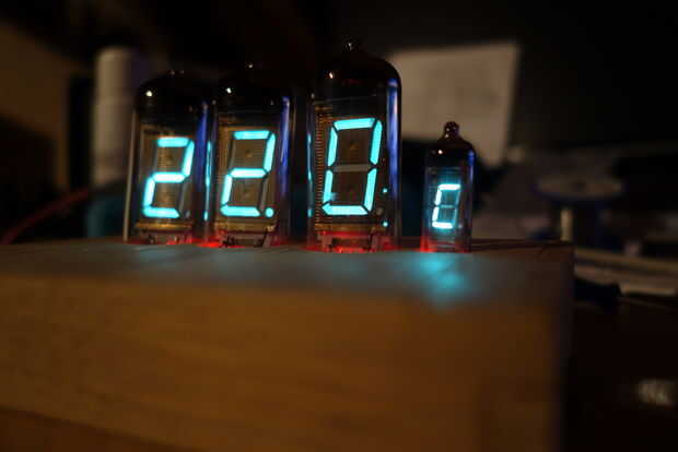 Me decidí a hacer algo que no había visto todavía y combinado (2) separar la electrónica usando pantallas de tubo de vacío de diferentes tipos (2) para hacer esta exhibición única. Nixie tubos para el termómetro y VFD (vacío flouresent pantalla) para