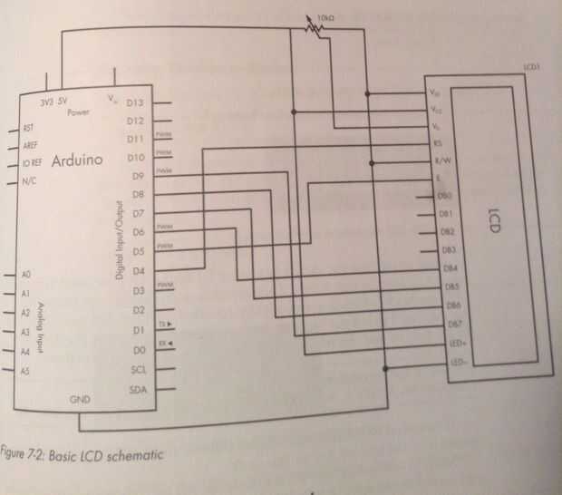 1) en primer lugar, seguir la línea de 5 voltios en el diagrama y conecte todo lo que necesita una recta 5 voltios. Esto sólo debería incluir el 15 y el segundo pasador de LCD.