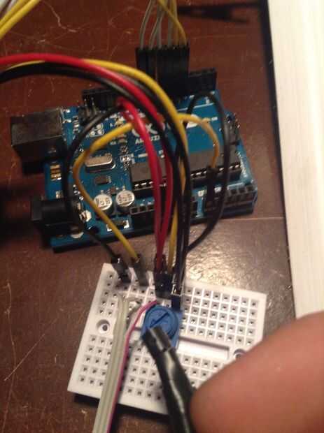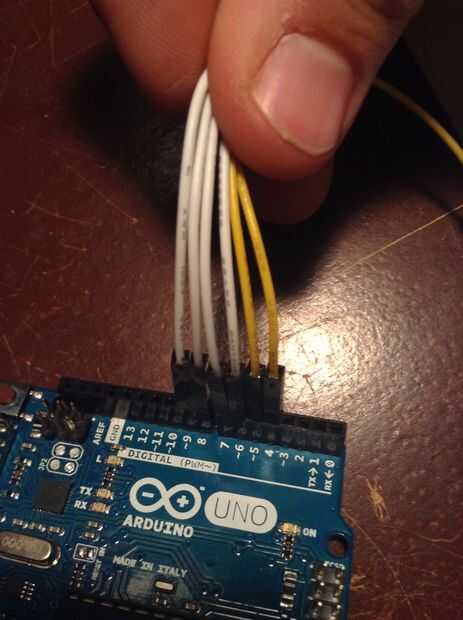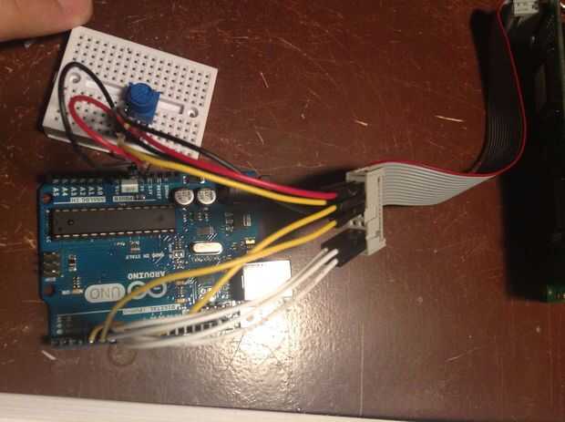 6) termine con la parte difícil! Lo único que dejó hacer es conectar Arduino pernos 6-9 a los pines del LCD 11-14, en orden de menor a mayor (va de 6 a 11, va de 7 a 12, etc..).