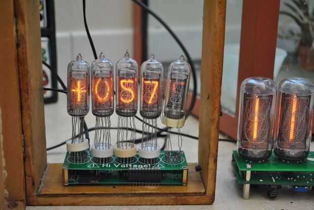 -(3) Z5700M nixies. Los pines es ligeramente diferente de la de IN-14 pero lo suficientemente cerca para trabajar con alterar el PCB solo un ángulo delicado de unos cables.