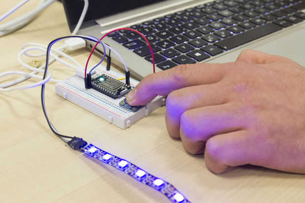 Por lo tanto, principalmente quería probar leer valores de los sensores mediante JS en el núcleo de la chispa, prueba de la inclusión de las bibliotecas de mis sensores y la capacidad para conducir una tira de NeoPixel.