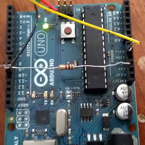 Del sensor: tierra y Vdd ambos van a la tierra del Arduino.  DQ va al pin digital 10.  Un resistor va del pin 10 a 5V.