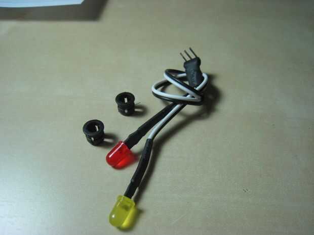 Necesita dos leds así. No biggie, éstos se conectarán directamente a los pines. (Sé que necesitan una resistencia pero estaba demasiado aburridos para calcularlo y les acaba de conectar. El naranja se ilumina de amarillo pero parece que funciona normalmente).