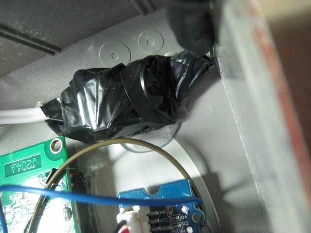Puede asegurar los componentes que desee en el cuadro. Recuerde que usted necesita aislar clavijas expuestas como puede cortocircuitar. He envuelto el relé y los convertidores 220-5v con un montón de cinta y había pegado abajo de los pernos.