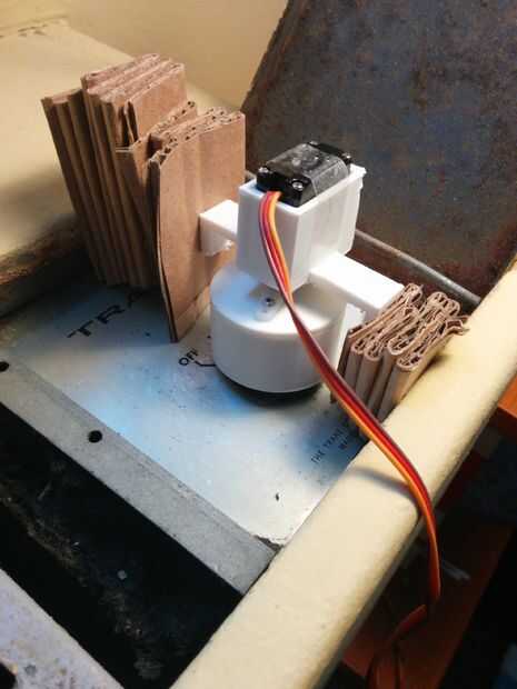He conectado un video de una temprana de la prueba. Nada emocionante pero da una idea de cómo funciona. La cartulina fue utilizada como un ajuste rápido, luego imprimí una parte para mantener el motor estable durante un uso prolongado. Es difícil saber cuando el motor enciende pero se puede ver el cable tirón cuando esto sucede y escuchar un bajo zumbido del calentador.