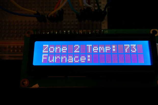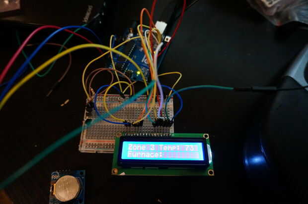< Tt >< tt >< tt > / * esta es la aplicación que utilizará para controlar el horno. El concepto es la siguiente: tengo 3 zonas monitorizará. Cada zona tendrá al menos un regulador de zona que será controlado por la aplicación de arduino. Cada zona tendrá un único termómetro que presentará un informe al regulador. Dependiendo de la lectura del termómetro y el termostato, los amortiguadores se abierto o cerrado y se encenderá el horno central. Una vez que se haya alcanzado una temperatura aceptable en todas las zonas, el horno se apagará. Además de ciclos de calefacción general, el sistema es programable. En este momento, sin embargo, el ciclo de programación se atenderán aquí, no a través del termostato. IMPORTANTES casos de prueba: (añadir como que piensan venir a través de ellos * necesita asegurarse de que el horno siempre está apagado si se cierran todos los 3 amortiguadores. * amortiguadores deben estar abiertos a menos que específicamente tienen que ser cerrado. * / #include < LiquidCrystal.h > //This es una librería para el LCD pantalla #include < OneWire.h > //This es una librería necesaria para el termómetro lecturas #include < DallasTemperature.h > //This es una biblioteca de temperatura #include < Wire.h > #include " RTClib.h"/ / conexiones: / / rs (pin 4 del LCD) para Arduino pin 12 / / rw (pin 5 del LCD) para Arduino pin 11 / / habilitar (pin 6 del LCD) a pin 10 del Arduino / / LCD pin 15 al pin 13 de Arduino / / LCD pines d4, d5, d6, d7 a los pines de Arduino 5, 4, 3, 2 lcd LiquidCrystal (12, 11, 10, 5, 4, 3, 2); grados de Byte [8] = {B01000 B10100, B01000, B00111, B00100, B00110, B00100, B00100}; const int contraluz = 13; controles de retroiluminación #define THERM_BUS 6 / / todas las lecturas de temperatura llegan a través de este pin único. OneWire oneWire(THERM_BUS); DallasTemperature sensors (& oneWire); DeviceAddress zone1Therm = {0x28, 0x48, 0 x 39, 0x11, 0 x 04, 0 x 00, 0 x 00, 0x94}; DeviceAddress zone2Therm = {0x28, 0xF2, 0x1F, 0x11, 0 x 04, 0 x 00, 0 x 00, 0x38}; DeviceAddress zone3Therm = {0x28, 0xBA, 0xF3, 0 x 10, 0 x 04, 0 x 00, 0 x 00, 0x98}; RTC_DS1307 RTC; Inicio programación / veces son 6 AM, 8:00, 15:00 y 21:00 int * PROGRAMMED_VALUES [7]; int SUNDAY_VALUES [4] = {67, 67, 67, 60}; int MONDAY_VALUES [4] = {67, 67, 67, 60}; int TUESDAY_VALUES [4] = {67, 67, 67, 60}; int WEDNESDAY_VALUES [4] = {67, 67, 67, 60}; int THURSDAY_VALUES [4] = {67, 67, 67, 60}; int FRIDAY_VALUES [4] = {67, 67, 90, 75}; int SATURDAY_VALUES [4] = {67, 67, 67, 60}; PROGRAMACIÓN final float zone1Temp = 0; Float zone2Temp = 0; Float zone3Temp = 0; Boolean z1Check = 0; Boolean z2Check = 0; Boolean z3Check = 0; Boolean isOverrideHeld = false; Boolean isOverridden = false; Boolean furnaceState = false; con furnaceState, false significa que es en la actualidad, verdad significa su en la actualidad. int overrideValue = 0; const int furnacePin = 1; int zoneCounter = 0; void setup() {Serial.begin(57600); / / Esto conecta el arduino al ordenador //TEMPERATURE configuración de SENSOR sensors.begin(); sensors.setResolution (zone1Therm, 10); lcd.createChar (0, grados); / / configurar RTC. Wire.Begin(); RTC.begin(); if (!. RTC.isrunning()) {registro ("ERROR", "RTC no corre!"); //RTC.adjust (DateTime (__DATE__, __TIME__)); //THIS sólo necesita a ser línea si usted son ajuste hasta su RTC por primera vez! UNA VEZ QUE, ESTA DEBE ESTAR DESACTIVADA! } //SETUP salidas pinMode (furnacePin, salida); pinMode (luz de fondo, salida); digitalWrite (luz de fondo, alto); CONFIGURACIÓN DE LA PROGRAMMED_VALUES PROGRAMA SEMANAL [0] = SUNDAY_VALUES; PROGRAMMED_VALUES [1] = MONDAY_VALUES; PROGRAMMED_VALUES [2] = TUESDAY_VALUES; PROGRAMMED_VALUES [3] = WEDNESDAY_VALUES; PROGRAMMED_VALUES [4] = THURSDAY_VALUES; PROGRAMMED_VALUES [5] = FRIDAY_VALUES; PROGRAMMED_VALUES [6] = SATURDAY_VALUES; } / / Esto funciona el bucle continua void loop() {delay(3000); //DELAY actualmente establecido a 10 segundos. Registrará //DATE/TIME ajuste necesario como lógica ("tiempo", "Bucle iniciado en" + getDateAndTime()); Sensors.requestTemperatures() de temperatura lógica; zone1Temp = getTemperature(zone1Therm); zone2Temp = getTemperature(zone2Therm); zone3Temp = getTemperature(zone3Therm); logTemperatureData(); getScreenOutput(); z1Check = checkZoneTemp(zone1Temp); z2Check = checkZoneTemp(zone2Temp); z3Check = checkZoneTemp(zone3Temp); Si (z1Check || z2Check || z3Check) {startFurnace();} else {stopFurnace();} si (z1Check & & furnaceState) {closeDamper(1);} else {openDamper(1);} si (z2Check & & furnaceState) {closeDamper(2);} else {openDamper(2);} si (z3Check & & furnaceState) {closeDamper(3);} else {openDamper(3);}} Boolean checkZoneTemp (int temperatura) {int temp = getTargetTemperature(); if(temperature > temp) {vuelta falso;} verdaderas;} void logTemperatureData() {registro ("Zone1Temp", (String)(int)zone1Temp); registro ("Zone2Temp", (String)(int)zone2Temp); registro ("Zone3Temp", (String)(int)zone3Temp);} void getScreenOutput() {zoneCounter ++; if(zoneCounter == 1) {String val = "Zone1:" + (String) (int) zone1Temp; Val += "(" + (String)getTargetTemperature(); += de Val (cadena) ")"; toScreen (val, "modo de:" + getModeString());} else if (zoneCounter == 2) {String val = "Zone2:" + (String) (int) zone2Temp; Val += "(" + (String)getTargetTemperature(); += de Val (cadena) ")"; toScreen (val, "horno de:" + getFurnaceState());} Else {zoneCounter = 0; Cadena val = "Zone3:" + (String) (int) zone3Temp; Val += "(" + (String)getTargetTemperature(); += de Val (cadena) ")"; toScreen (val, "abrir:" + getActiveZonesForScreen());}} int getTargetTemperature() {int modo = getMode(); Fecha y hora = ahora RTC.now(); fecha de int = now.dayOfWeek(); int * valores = {0}; log ("info", fecha (cadena)); valores = PROGRAMMED_VALUES [fecha]; log ("info", "conseguir la temperatura objetivo:" + (String)values[mode]); devolver valores [modo]; } String getActiveZonesForScreen() {String retVal = ""; Si (z1Check & &! furnaceState)