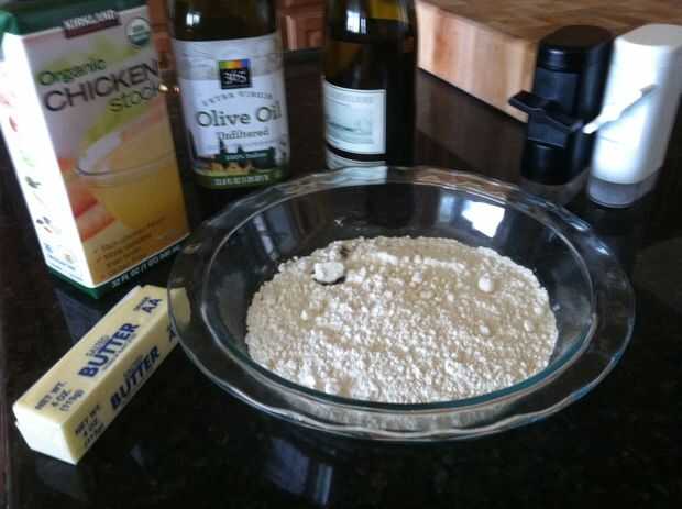 Añadir el vino a la sartén y revolver para hacer todos los bits buena. Que al cocinero vino durante un minuto. Añadir el caldo de pollo y la cucharada restante de mantequilla y remolinar alrededor en la sartén. Sazonar con sal y pimienta. Verter la salsa sobre el saltimbocca, decorar con hojas de salvia y gajos de limón y servir.