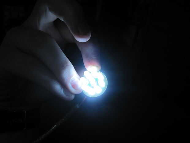 Después de haber soldado los cables en el módulo de LED, enchufe en el ordenador y asegúrese de que permanece constantemente encendido. Si brilla intensamente brillantemente, sáltese el resto de este párrafo. Si parpadea, o dañado el módulo LED o suelda las conexiones en puente. Si se daña la Junta, vas a tener que conseguir otro. Si un puente sobre una conexión, el soldador y alambre de cobre trenzado (alguna mecha de desoldadura) y la conexión mientras toca el alambre para la soldadura del calor. Trate de eliminar algunas de la soldadura a unbridge la conexión. Después de haber eliminado algunos soldadura, enchufarlo en el ordenador. Si funciona, genial! Si no intentas otra vez. No intente muchas veces pero, si no te queman el módulo LED.