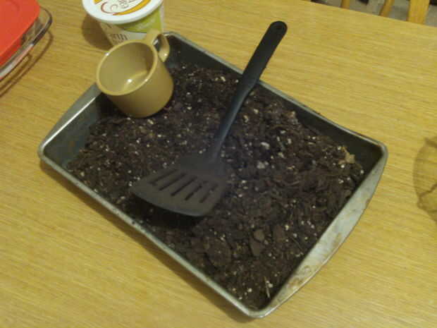 Pre-calentar el horno a 250 grados. Poner tierra alrededor de tres pulgadas en un pan de galleta pastel de hoja. Hornee durante aproximadamente una hora o hasta que el suelo es de 150 grados. No cocine demasiado, esto puede liberar toxinas en el suelo que dañan a la planta.