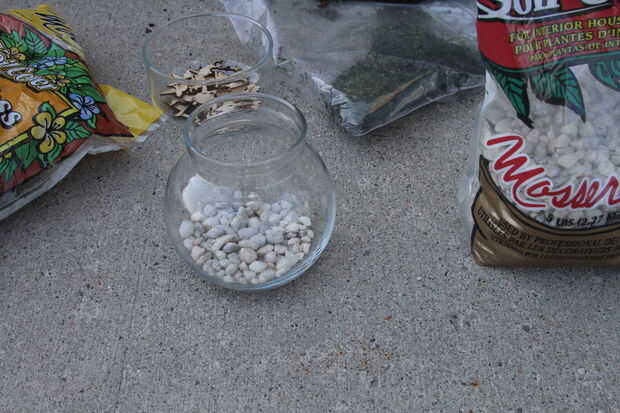 Llene el fondo de su vaso de vidrio con piedras!