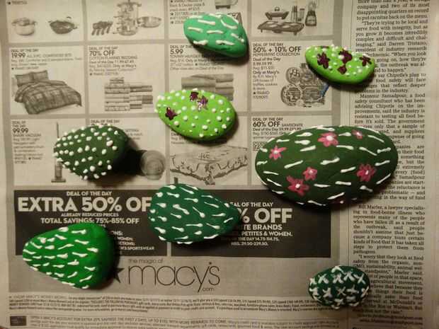 -utilizar los otros colores de pintura (además de verde) para pintar unas flores en unos cactus si desea y deje seco completamente.