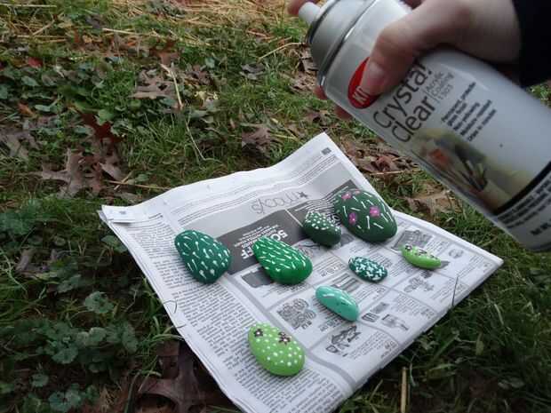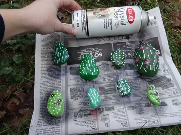 Confían en poner barniz en mi cactus para proteger mejor a la pintura en las rocas. También realmente como Krylon Crystal Clear y usarlo mucho.