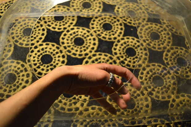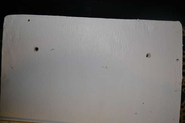 2 Haga dos orificios en la madera, uno para colgarlo en la pared, así que necesitan ser lo suficientemente grande para el tornillo grande, que será capaz de sostener.