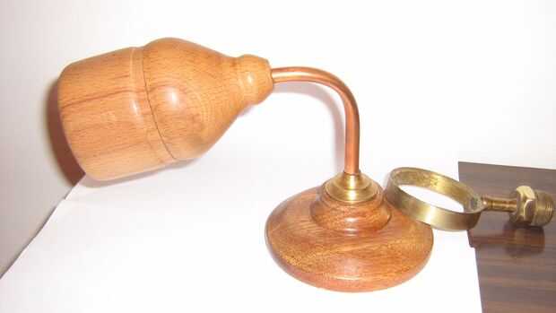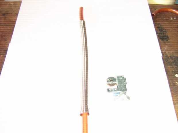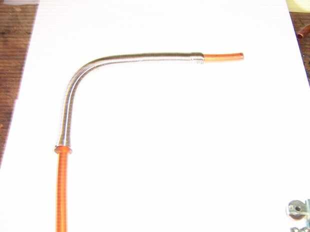 dar suficiente tubería para entrar en la base, y en la madera que sostiene la bombilla. (Usar el cobre del resorte de flexión)