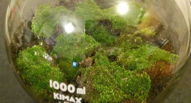 - Coloque el tapón/tapa/corcho en la botella y encontrar un buen lugar sobre todo sombrío para mostrar su musgo