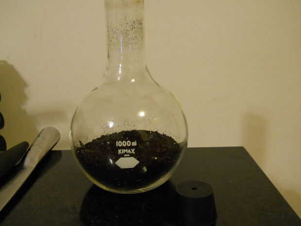 - Al llegar el musgo con cuidado, añadir un par de pulgadas de suelo su botella (yo usé un embudo ya que el cuello de mi botella es particularmente estrecho) y humedecer ligeramente con un poco de agua