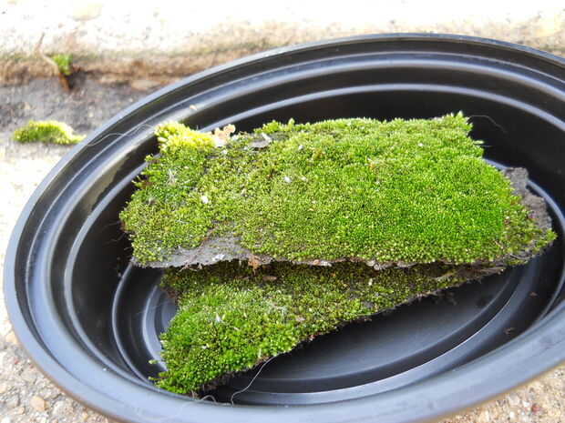Nota: Existen otros métodos de cultivar musgo (que implican combinar 2 tazas de suero de leche o yogur y alrededor de 1 1/2 tazas de musgo picado hasta en una licuadora y luego verter o pintura de la mezcla en el suelo o las rocas), pero personalmente prefiero este método más sencillo ya que el método de licuadora toma semanas para ver ningún resultado (no quiero poner musgo en mi licuadora).