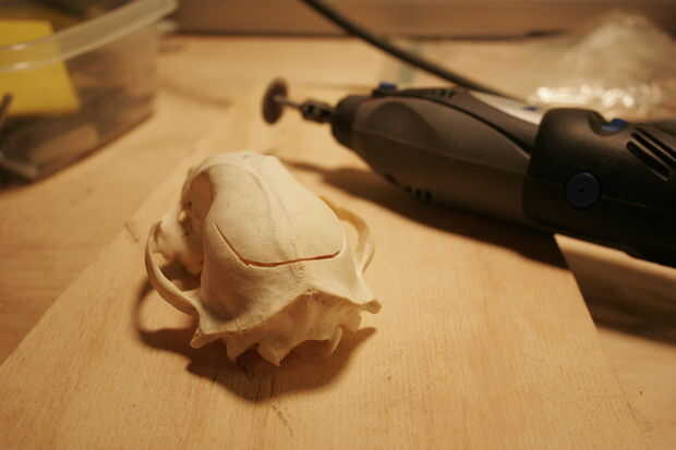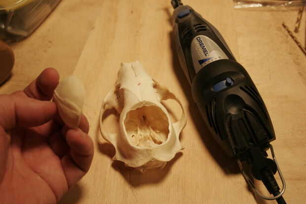 Usé una Dremel con un disco de corte. Esto crea mucho de polvo muy fino de hueso y en mi caso que horrible huele humo.