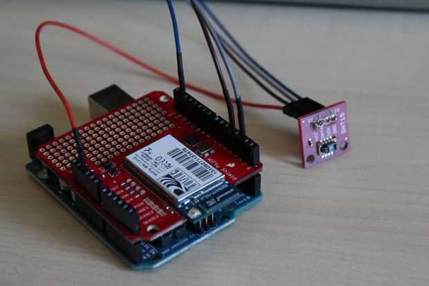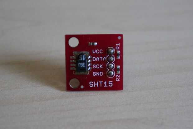 utilicé el SHT15 breakout Junta que es un tablero de Confecciones que tenía un sensor de temperatura y humedad combinado. Usted tendrá que soldar en sólo 4 cabezales de perno. Dos para