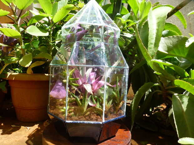 Hojear un viejo libro, topé con un 'terrario de vidrio' y pensé que podía hacerlo como proyecto de fin de semana. El terrario presentado en el libro fue hecho de muchos pedazos de vidrio, bordes envueltos con hoja de cobre y luego soldadas juntas. Yo planeaba usar pegamento para unir todas las piezas en lugar de hoja de cobre soldada.