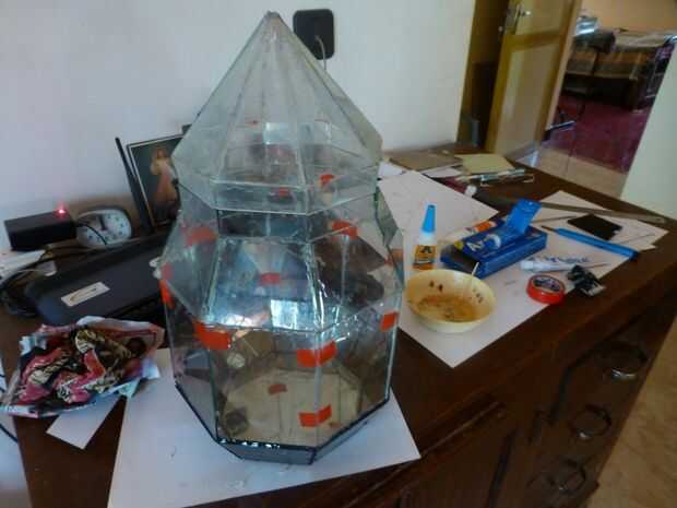 Quite la cinta de conducto de todas las juntas y aplicar adhesivo de epoxi Araldite. Limpiar el conjunto con un agente de limpieza. Coloque la parte superior. El terrario está listo para la siembra.