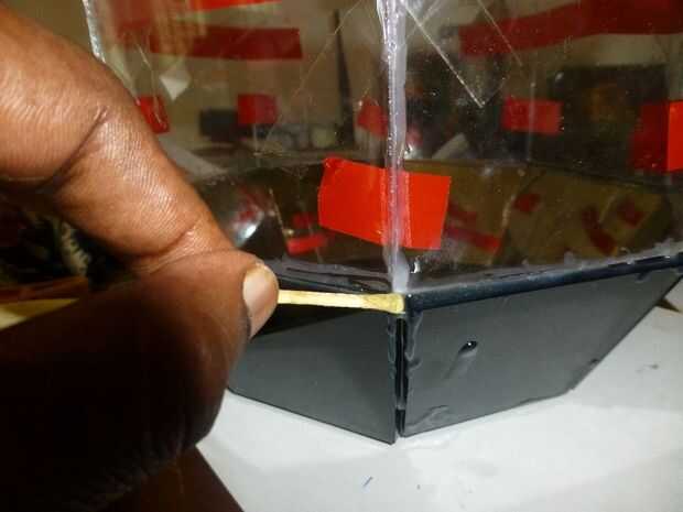 • Luego aplique la mezcla adhesivo epoxi Araldite sobre todas las juntas quitando cinta uno por uno.