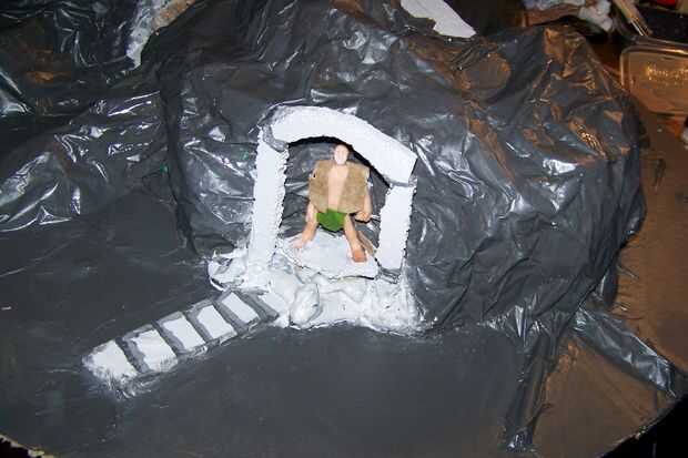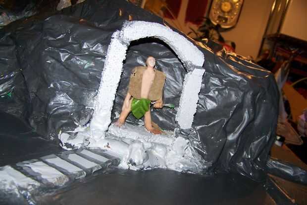 He utilizado espuma de poliestireno y adhesivo caliente cuidadosamente construir estructuras en el paisaje y realizar varios efectos. Caliente-encolar el racimo de cristales encendidos y papel mached alrededor de él, construí un túnel y un arco. Cubrí cualquier refuerzo expuesto con papel para que se vea como más cantos provenientes de las montañas y parte de él como un camino hacia el arco. Después de él fue todo con cable arriba y completamente listo, que déjelo secar durante la noche.